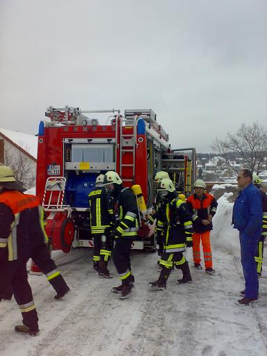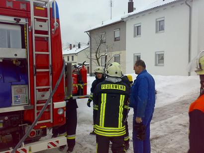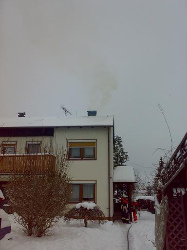 Gegen 09.25 Uhr wurden die Feuerwehren Hollfeld, Weiher, Treppendorf, Schönfeld und Aufseß zu einem Kaminbrand in die Wendelinstraße nach Hollfeld gerufen. Bei Eintreffen der FF Hollfeld war bereits das komplette Wohnhaus verraucht. Die im Haus befindlichen Personen, darunter 4 Kleinkinder, hatten das Haus bereits verlassen. Unter schwerem Atemschutz drangen die Einsatzkräfte ins Dachgeschoss und in den Heizungsraum im Keller vor. Da auch bereits Rauch aus der Zwischendecke zum Dachboden hervorquoll, wurde die FF Eckersdorf mit der Wärmebildkamera nachalarmiert. Der Atemschutztrupp im Dachboden öffnete mit einer Kettensäge die Fußbodenbretter um an mögliche Glutnester heranzukommen, es stellte sich aber heraus, dass dort glücklicherweise noch nichts brannte. Der hinzugerufene Kaminkehrer reinigte dann den Kamin. Der Atemschutztrupp im Keller konnte dann die Glut aus dem Kamin räumen und ins Freie bringen. Im Aussenbereich wurde eine Wasserversorgung ab Unterflurhydrant mit 2 C-Rohren in Bereitschaft errichtet. Nachdem auch mit der Wärmebildkamera keine weiteren Brandnester entdeckt werden konnten, wurde das Haus mit dem Überdruckbelüfter rauchfrei geblasen. Ein Hausbewohner wurde mit einer Rauchvergiftung vom Rettungsdienst ins Klinikum Bayreuth gebracht. Der Einsatz endete gegen 11.00 Uhr. Um 13.30 Uhr wurde nochmal mit Hilfe der Wärmebildkamera nachkontrolliert. Von der FF Hollfeld waren 20 Einsatzkräfte mit HLF 20/16, LF 16/12 und Mehrzweckfahrzeug im Einsatz. Insgesamt waren 6 Atemschutztrupps der Feuerwehren Hollfeld und Aufseß eingesetzt.
