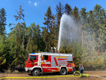 Am Donnerstag, 04.08.2022, wurde die Feuerwehr Hollfeld um 14.01 Uhr zu einem Waldbrand zwischen Aufseß und Neudorf alarmiert. Ausgehend von einem Feldbrand kam es zu einem Bodenfeuer im angrenzenden Waldstück. Zahlreiche wasserführende der umliegenden Feuerwehren wurden benötigt, um die Versorgung mit Löschwasser sicherstellen zu können. Mittels des Wasserwerfers vom Hollfelder HLF 20/16 wurden die Baumkronen abgelöscht, da das Feuer bereits an einigen Bäumen hochgeklettert ist. Im Einsatz waren 11 Feuerwehrdienstleistende aus Hollfeld mit dem HLF 20/16 und dem LF 16/12, sowie die Feuerwehren aus Aufseß, Wüstenstein, Heiligenstadt, Breitenlesau, Königsfeld, Plankenfels, Waischenfeld, Hubenberg, Oberfellendorf und Unterleinleiter.