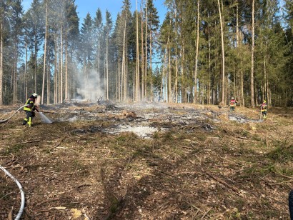 Am Freitag, 21.03.2025, wurde die Feuerwehr Hollfeld um 13.30 Uhr zu einem Brand in einem Waldstück bei Drosendorf alarmiert. Beim Eintreffen an der Einsatzstelle brannten ca. 100m² Waldboden. Mit 2 C-Rohren und ca. 7000 Liter Löschwasser aus Tanklöschfahrzeugen konnte das Feuer schnell gelöscht werden. Im Einsatz waren 15 Feuerwehrdienstleistende aus Hollfeld mit dem TLF 4000, dem Mehrzweckfahrzeug, dem GW-L1 mit dem Löschroboter Wolf R1 . Darüber hinaus waren noch die Feuerwehren aus Drosendorf und Königsfeld im Einsatz.