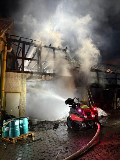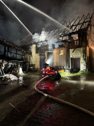 Am Mittwoch, 14.05.2025, wurde die Feuerwehr Hollfeld um 21:44 Uhr zu einem Scheunenbrand im Pegnitzer Ortsteil Bronn alarmiert. Im Einsatz war der Löschroboter Wolf R1. Bei Eintreffen an der Einsatzstelle brannte eine an ein Wohnhaus angebaute Scheune in voller Ausdehnung. Das Hauptziel der Einsatzkräfte war es, das Wohnhaus zu schützen, was letztlich auch gelungen ist.