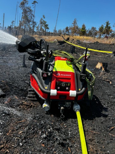 Im Einsatzgebiet angekommen, übernahm das Bayreuther Kontingent eigenverantwortlich die zugewiesenen Aufgaben. Die Feuerwehrleute aus Hollfeld arbeiteten dabei eng mit Kameradinnen und Kameraden anderer Feuerwehren zusammen – sowohl zu Fuß mit Löschrucksäcken, Feuerpatschen, Schaufeln und Schläuchen als auch mit technischer Unterstützung durch den Löschroboter Wolf R1 und den Wasserwerfer des TLF 4000.