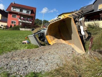 Am Montag, 04.08.2025, wurde die Feuerwehr Hollfeld um 16.34 Uhr zu einem Unfall mit einer Baumaschine in Kainach alarmiert. Auf einer Baustelle war ein sog. Dumper eine Böschung hinabgestürzt. Entgegen der ersten Meldung stellte, sich beim Eintreffen an der Einsatzstelle heraus, dass der Fahrer der Baumaschine nicht im Fahrzeug eingeklemmt ist. Die Feuerwehr unterstützte den Rettungsdienst beim Transport des Patienten in dem unwegsamen Gelände. Nachdem der verletzte Fahrer mit dem Rettungshubschrauber abtransportiert war, endete der Einsatz der Feuerwehr nach ca. einer Stunde. Im Einsatz waren 15 Feuerwehrdienstleistende aus Hollfeld mit dem HLF 20/16, dem GW-L1und dem Mehrzweckfahrzeug, sowie die Feuerwehren aus Kainach, Wonsees und Waischenfeld ( Abrollbehälter THL). Die beiden letzteren konnten noch auf der Anfahrt wieder abbestellt werden.