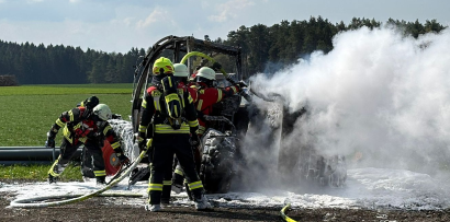 Am Freitag, 17.04.2026, wurde die Feuerwehr Hollfeld um 10.48 Uhr zum Brand einer landwirtschaftlichen Maschine in Neuhaus alarmiert. Beim Eintreffen an der Einsatzstelle stand der Teleskoplader in Vollbrand. Unter Atemschutz wurde das Gefährt mit Wasser und Schaum abgelöscht. Der Einsatz endete nach ca. 2 Stunden. Im Einsatz waren zehn Feuerwehrdienstleistende aus Hollfeld mit dem HLF 20/16, dem TLF 4000 und dem GW-L1, sowie die Feuerwehren aus Neuhaus, Sachsendorf und Aufseß.
