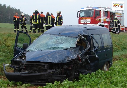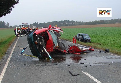 Aus bislang unbekannten Gründen ist kurz nach der Abzweigung nach Fernreuth ein PKW mit einem Kleinbus kollidiert. Durch den Zusammenprall wurde der Kleinbus in ein angrenzendes Feld geschleudert, der PKW blieb auf der Seite liegen.