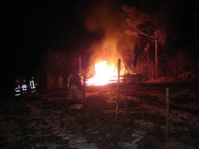 Am Montag, 20.02.2012, wurde die Feuerwehr Hollfeld um 0.25 Uhr zum Brand eines Garten-/Wochenendhauses bei Wadendorf alarmiert. Bereits auf der Anfahrt wurde mitgeteilt, dass sich drei teilweise volle 11Kg-Gasflaschen im Gebäude befinden. Bei Eintreffen stand das Gebäude im Vollbrand, die Gasflaschen brannten auch mit hohen Stichflammen ab. Da das Gebäude nicht mehr zu retten war und keine Gefährdung für die Umgebung bestand, entschloss man sich, das Gebäude kontrolliert abbrennen zu lassen. Der Brandschutt wurde schließlich abgelöscht und mit einem Schaumteppich überzogen, damit das Feuer nicht mehr aufflammt. Im Einsatz waren 11 Mann der Feuerwehr Hollfeld mit dem HLF 20/16 und dem Mehrzweckfahrzeug, sowie die Feuerwehren aus Wadendorf und Plankenfels. Weiter war der Rettungswagen aus Hollfeld und eine Streife der Polizei anwesend. Einsatzende gegen 2.30 Uhr.