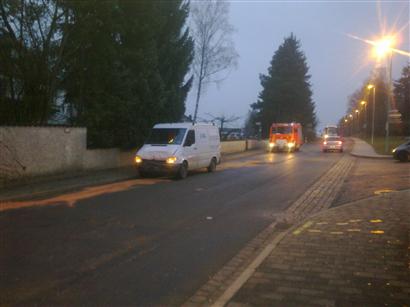 Am Mittwoch, 28.11.2012, wurde ein Hollfelder Feuerwehrmann gegen 7.30 Uhr auf einen gerade eben passierten Verkehrsunfall in der Kulmbacher Straße aufmerksam, bei dem ein Fahrzeug so beschädigt wurde, dass Motorenöl und Kühlflüssigkeit austrat. Das Gemisch drohte in die Kanalisation zu laufen. Umgehend informierte er das Straßenbauamt und den Stadtbauhof (Kläranlage) über die Lage und begab sich zum Feuerwehrhaus, um dort geeignetes Gerät zum Auffangen des Öls zu holen. Zusammen mit den Mitarbeitern des Straßenbauamtes gelang es, das Öl vor Eintritt in den Kanal aufzufangen. Weiter wurde die Straße mit Ölbinder abgestreut. Im Einsatz war 1 Mann mit dem LF8. Einsatzdauer ca. 45 Minuten.