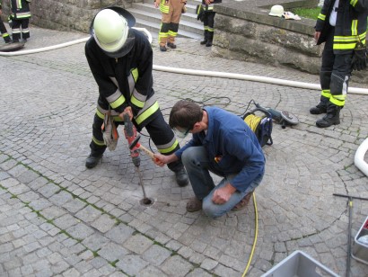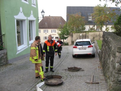 Am Samstag, 20.09.2014, wurde die Feuerwehr Hollfeld um 07.40 Uhr zum Steinweg in Hollfeld gerufen, um einen Keller auszupumpen. Infolge eines Wasserrohrbruchs war der Keller bereits bis auf halbe Raumhöhe mit Wasser vollgelaufen. Nachdem durch die Stadtwerke der Strom abgeschalten war, konnte mittels einer Tauchpumpe das Wasser abgepumpt werden. Es lief allerdings immer wieder Wasser nach, da der Zulauf aufgrund eines Defekts am Schieber außerhalb des Hauses nicht abgestellt werden konnte. Erst nachdem bereits eine große Menge Wasser abgepumpt war, konnte der Keller betreten und das Wasser im Haus abgestellt werden. Anschließend wurden letzte Restmengen mit dem Wassersauger entfernt. Im Einsatz waren 13 Mann der Feuerwehr Hollfeld mit dem HLF 20/16 und dem Mehrzweckfahrzeug. Einsatzdauer ca. zwei Stunden.