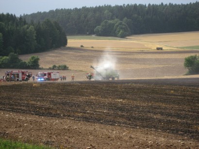 Am Dienstag, 04.08.2015, wurde die Feuerwehr Hollfeld um 17.08 Uhr zum Brand eines Mähdreschers bei Großenhül alarmiert. Beim Dreschen geriet die Maschine , sowie das Stoppelfeld in Brand. Starker Wind blies die Flammen in Richtung eines Nahen Waldes. Mit Güllefässern und wasserführenden Feuerwehrfahrzeugen wurde Löschwasser an die Einsatzstelle transportiert. Gegen 18 Uhr konnte die Feuerwehr Hollfeld wieder abrücken. Im Einsatz waren 10 Mann der Feuerwehr Hollfeld mit dem HLF 20/16 und dem LF 16/12 sowie die Feuerwehren aus Großenhül, Schirradorf, Sanspareil, Thurnau, Kasendorf, Azendort, Weismain, Stadelhofen und Plankenfels.