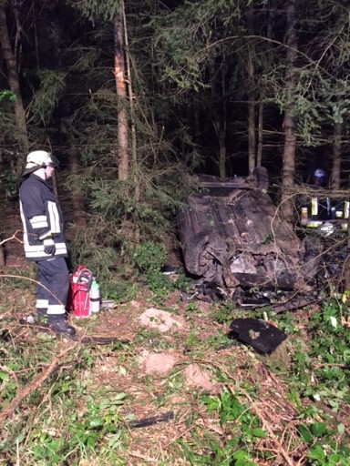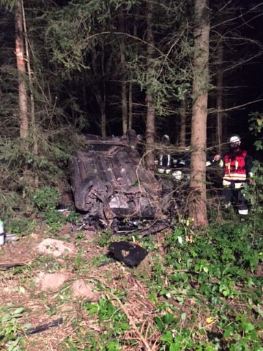 Am Mittwoch, 05.10.2016, wurde die Feuerwehr Hollfeld um 22.20 Uhr zu einem Verkehrsunfall auf die Staatsstraße zwischen Hollfeld und Freienfels alarmiert. In Fahrtrichtung Freienfels, kurz nach der Abzweigung nach Kainach, kam ein junger Fahrer nach rechts von der Fahrbahn ab, überschlug sich und landete auf dem Dach im Wald. Von der Straße aus war das Auto kaum sichtbar. Glücklicherweise konnte sich der Fahrer selbst aus dem PKW befreien und Hilfe holen. Wäre ein Beifahrer im PKW gewesen, hätte dieser den Unfall vermutlich nicht überlebt, denn das Dach auf dieser Seite war sehr weit eingedrückt. Die Feuerwehr hatte die Aufgabe, die Unfallstelle im Wald auszuleuchten, sowie die Einsatzstelle abzusichern. Nachdem das Fahrzeug geborgen war, endete dieser Einsatz gegen 0.20 Uhr. Eingesetzt waren 16 Mann der Feuerwehr Hollfeld mit dem HLF 20/16, dem LF 16/12 und dem Mehrzweckfahrzeug, sowie die Feuerwehr Freienfels.