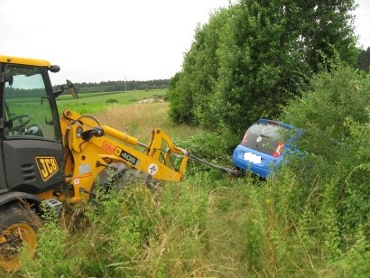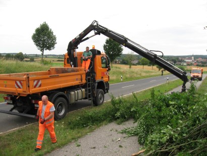 Die ersteintreffenden Feuerwehrleute kümmerten sich umgehend um die Fahrerin, welche sichtlich unter Schock stand. Die weiteren Kräfte sicherten die Unfallstelle ab. Mittels eines Radladers vom Stadtbauhof Hollfeld wurde der PKW gegen Absturz gesichert. Nach der Unfallaufnahme durch die Polizei wurden einige Bäume am Straßenrand gefällt, um das Auto bergen zu können. Nachdem die Unfallstelle geräumt war, konnte der Einsatz um 8.50 Uhr beendet werden. Im Einsatz waren 14 Mann der Feuerwehr Hollfeld mit dem HLF 20/16, dem LF 16/12 und dem Mehrzweckfahrzeug.