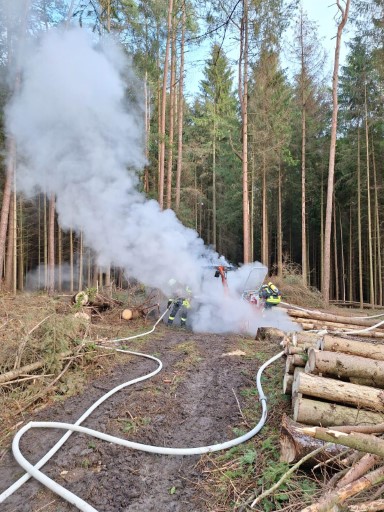 Am Montag, 06.11.2023, wurde die Feuerwehr Hollfeld um 14.49 Uhr zum Brand einer Forstmaschine im Wald bei Sachsendorf alarmiert. Da der genaue Schadensort nicht bekannt war, sammelten sich die anrückenden Feuerwehren am Feuerwehrhaus in Sachsendorf, um dann gemeinsam zum Brandort zu fahren. Am Einsatzort eingetroffen begann ein Trupp der Hollfelder Wehr unter schwerem Atemschutz mit der Brandbekämpfung. Die Wasserversorgung wurde durch die wasserführenden Fahrzeuge aus Hollfeld und Aufseß sichergestellt. Das Feuer konnte relativ schnell gelöscht werden. Die auf Anfahrt befindliche Feuerwehr Waischenfeld wurde nicht mehr benötigt. Der Einsatz war nach ca. einer Stunde beendet. Im Einsatz waren 11 Feuerwehrdienstleistende aus Hollfeld mit dem HLF 20/16 und dem Mehrzweckfahrzeug, sowie die Feuerwehren aus Sachsendorf, Neuhaus, Aufseß und Waischenfeld.
