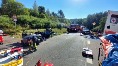 Am Samstag, 21.09.2024, wurde die Feuerwehr Hollfeld um 10.04 Uhr zu einem schweren Verkehrsunfall auf die Staatsstraße zwischen Neuhaus und Aufseß alarmiert. Beim Eintreffen an der Einsatzstelle bot sich folgende Lage: Zwei PKW waren frontal zusammengestoßen. In einem PKW waren Fahrerin und Beifahrerin eingeklemmt. Der Fahrer des anderen PKW und ein Kleinkind waren bereits außerhalb der Fahrzeuge. In Zusammenarbeit mit dem Rettungsdienst begann die Feuerwehr Hollfeld mit der Befreiung der Beifahrerin. Hierzu wurde die B-Säule entfernt und die Frau patientengerecht aus dem Fahrzeug geholt. Schwieriger gestaltete sich die Befreiung der Fahrerin. Sie war im Beinbereich schwer eingeklemmt. Es wurde zuerst das Dach des PKW mittels Rettungsschere abgenommen. Im Anschluss daran wurde mit dem Rettungszylinder das Fahrzeug im Fußbereich auseinandergedrückt, so dass die Beine frei waren. Letztlich wurde auch die Fahrerin patientengerecht aus dem Auto befreit. Insgesamt dauerte die Rettungsaktion ca. 45 Minuten. Sämtliche Unfallbeteiligte kamen mit Rettungswägen oder Rettungshubschraubern in Krankenhäuser. Die Aufräumarbeiten an der Unfallstelle übernahmen die Ortswehren, so dass die Feuerwehr Hollfeld nach ca. 1,5 Stunden abrücken konnte. Im Einsatz waren 20 Feuerwehrdienstleistende aus Hollfeld mit dem HLF 20/16, dem TLF 4000, dem GW-L1 und dem Mehrzweckfahrzeug. Weiter waren die Feuerwehren aus Aufseß, Neuhaus und Heiligenstadt und vom Rettungsdienst drei RTW, zwei Rettungshubschrauber und ein Notarztfahrzeug vor Ort.