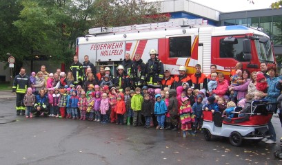 Am Freitag, 20.09.2013, probten die Kinder des Kindergarten St. Otto mit ihren Erzieherinnen und der Feuerwehr Hollfeld den Ernstfall. Angenommen wurde eine Rauchentwicklung im Gebäude. Um 10 Uhr ertönte der Alarm für die Feuerwehr Hollfeld. Mit drei Fahrzeugen und 20 Mann rückte die Feuerwehr zum Kindergarten aus. Mit drei Atemschutztrupps ging man ins Gebäude vor, um die Kinder zu retten. Diese wurden vorher auf das Szenario vorbereitet und so klappte alles reibungslos. Im Außenbereich wurde noch ein Löschangriff aufgebaut. Im Anschluss an die Übung durften die Kinder die Feuerwehrautos besichtigen und es wurde ein Gruppenfoto aufgenommen.